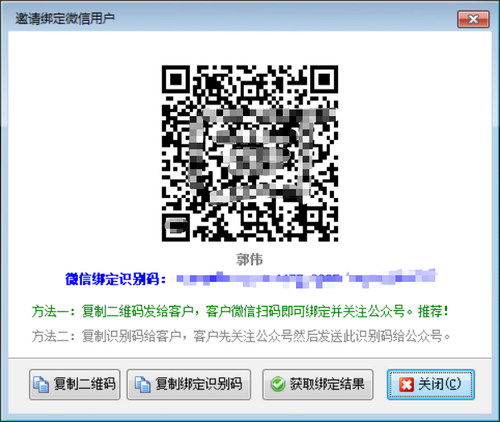 微信業(yè)務(wù)消息支持推送給客戶和內(nèi)部業(yè)務(wù)員,客戶和業(yè)務(wù)員綁定操作支持在基礎(chǔ)資料“客戶信息”和“員工信息”中獲取綁定二維碼發(fā)送綁定,也可以直接開單界面“更多操作”下發(fā)送微信消息處點(diǎn)擊邀請客戶綁定微信,獲取綁定二維碼發(fā)送客戶進(jìn)行綁定,如下圖所示: