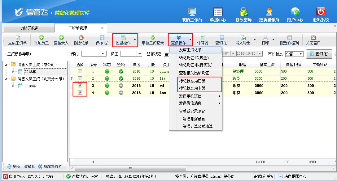 工資管理功能的典型功能截圖如下: