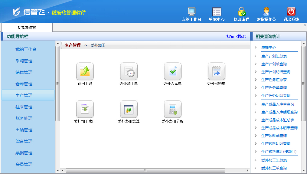 包括功能:委外加工單、委外入庫(kù)單、委外領(lǐng)料單、委外加工費(fèi)用、委外加工費(fèi)用結(jié)算、委外費(fèi)用分配等。