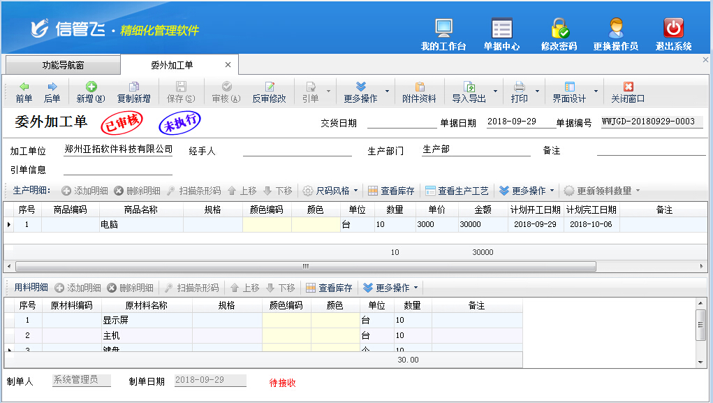 委外加工管理擴(kuò)展功能模塊的典型功能截圖如下: