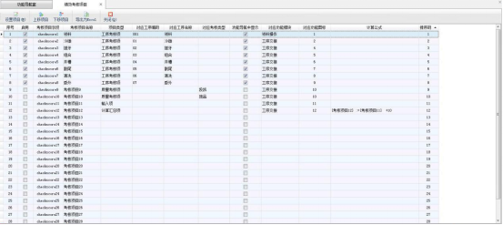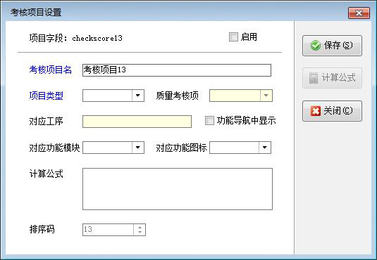 設(shè)置考核項目:在工具欄點擊“設(shè)置項目”,可以打開“考核項目設(shè)置”界面,可以設(shè)置考核項目名、項目類型(工序考核項、質(zhì)量考核項、輸入項、計算匯總項)及考核項目否需要在功能導(dǎo)航中顯示等。如下圖所示: