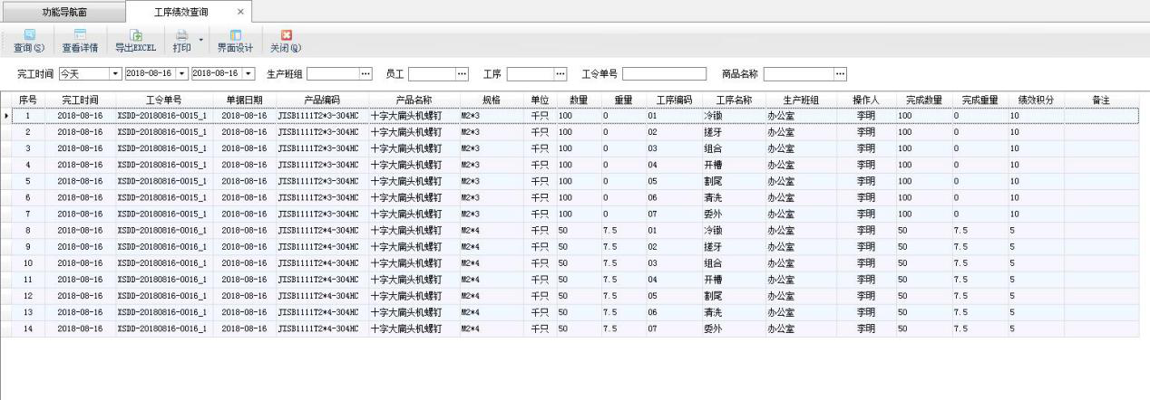 查看詳情:在工具欄點擊“查看詳情”按鈕可以查詢工序績效明細信息。
