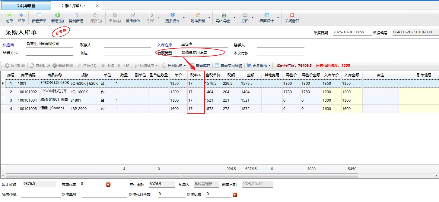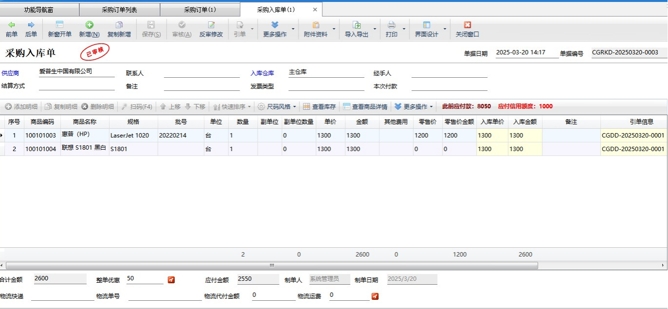 應付金額:審核單據后,軟件將自動生成應付款記錄。