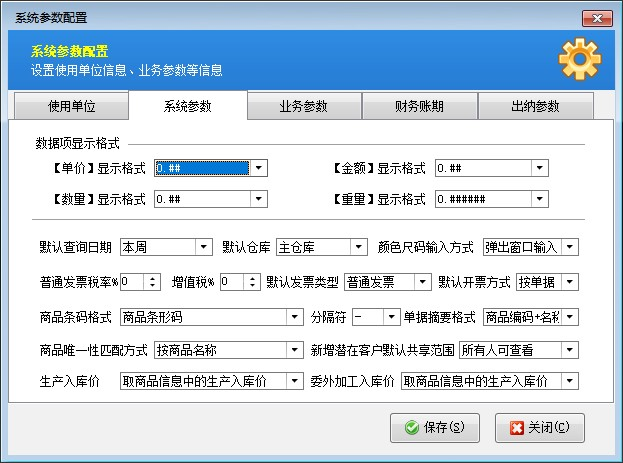 設置賬套參數:設置使用單位信息、系統參數和業務參數,通過這些參數使業務功能能夠適應不同企業的管理需求;