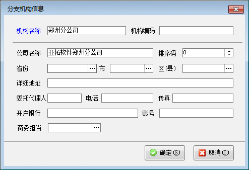 機構名稱:必填項,可輸入分支機構的簡稱;