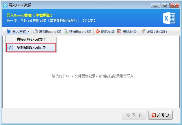 復(fù)制粘貼Excel記錄:先打開Excel文件進(jìn)行復(fù)制操作,復(fù)制需復(fù)制下標(biāo)題行,然后在導(dǎo)入界面點(diǎn)擊“粘貼Excel記錄”,會(huì)把Excel文件中內(nèi)容直接復(fù)制進(jìn)去。