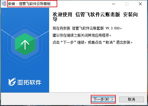 ????軟件升級更新設置了更新程序,登錄時會提示版本不一致,需要升級更新,直接點擊“確定”按鈕,彈出提示信息是否下載更新,點擊“是”下載版本,下載完成后點擊“立即安裝”,會彈出安裝界面。下一步默認安裝路徑在“D盤信管飛軟件云賬套文件”,點擊下一步繼續安裝,如下圖所示: