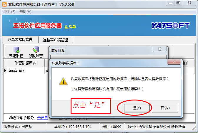 ????在新主機電腦上安裝軟件,打開亞拓軟件應用服務器,然后點擊“新建賬套”,執(zhí)行新建賬套操作,賬套名為此前備份的賬套名,新建賬套完成后,選擇此新建的賬套,點“恢復賬套”,選擇此前拷貝過來的備份賬套文件進行恢復數(shù)據(jù),數(shù)據(jù)恢復后,在登錄窗口選擇賬套登錄,檢查下數(shù)據(jù)是否完全恢復。