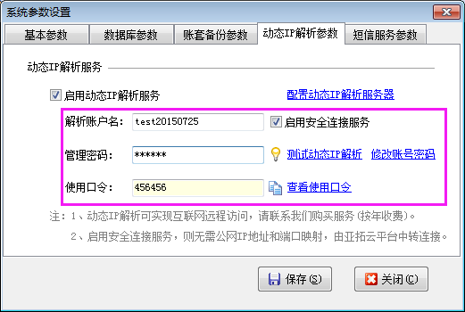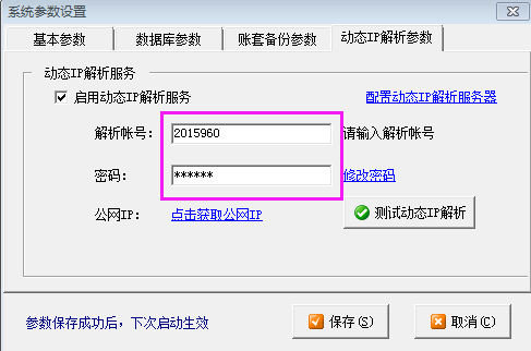 ????②主機電腦配置動態(tài)IP解析服務參數(shù),并定時將公網(wǎng)IP地址信息發(fā)送給亞拓軟件云服務器。