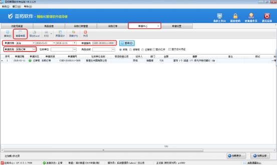 圖一 在“單據(jù)中心”內(nèi)查找指定單據(jù)