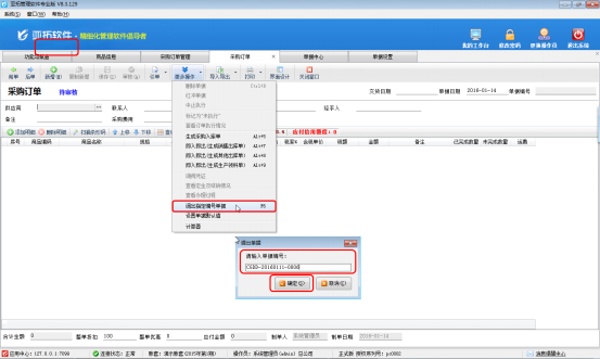 ????另外也可以在相應單據(jù)開單頁面的工具欄內(nèi)點擊“更多操作”——》“調(diào)出指定單據(jù)編號”,同樣可以快速打開相應的單據(jù)。如下圖二所示。