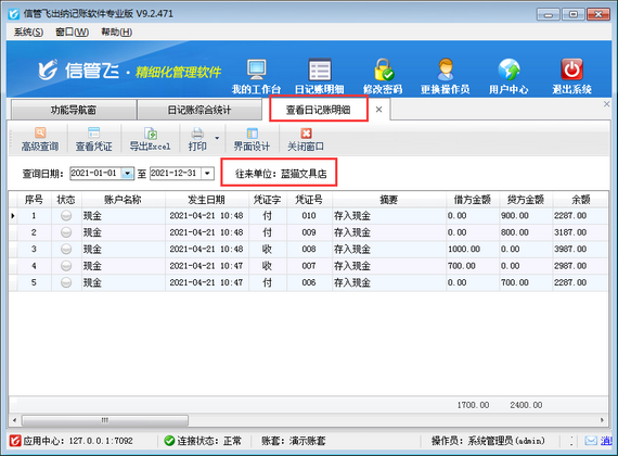????歡迎下載試用可日記賬界面結(jié)銷應(yīng)收應(yīng)付款的軟件:信管飛出納記賬軟件