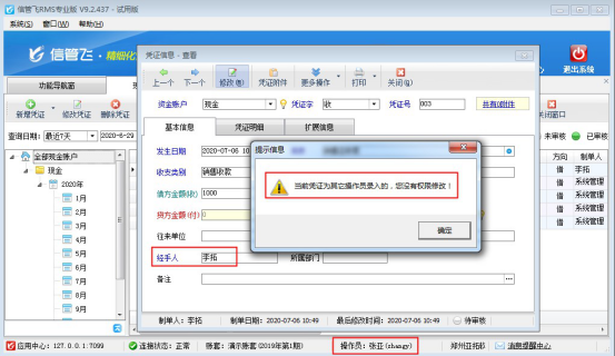 # 6.4.7 信管飛RMS軟件如何設(shè)置操作員不可修改其他人員所開的出納憑證?