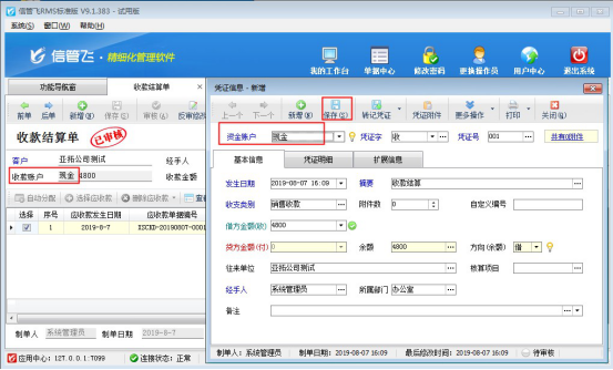 ????信管飛RMS標(biāo)準(zhǔn)版和專業(yè)版中增加了出納模塊,可以登記現(xiàn)金銀行日記賬。信管飛RMS 軟件中用戶在做收款結(jié)算后如需要把這筆賬管理到日記賬中,可以在收款時(shí)轉(zhuǎn)記到出納日記賬中。在軟件中如何操作呢?