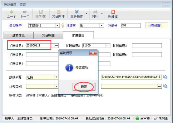 ????可修改已審核憑證的擴(kuò)展信息”功能在版本V9.1.383中增加,如需要使用可以升級到此版本。