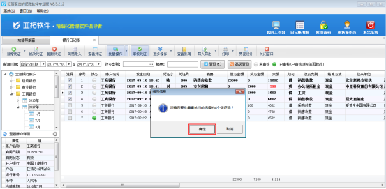 ????在銀行日記賬列表界面,如圖2所示,點(diǎn)擊“更多操作”——》“反審憑證”,系統(tǒng)彈出提示信息“您確定要反審當(dāng)前憑證?”,點(diǎn)擊“確定”按鈕,如圖3所示。