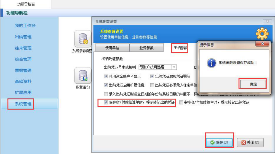 ????在功能導(dǎo)航窗點(diǎn)擊“系統(tǒng)管理”——》“系統(tǒng)參數(shù)配置”——》“業(yè)務(wù)參數(shù)”可以進(jìn)入到“業(yè)務(wù)參數(shù)”配置界面,在出納憑證相關(guān)參數(shù)內(nèi)打勾啟用“出納憑證摘要只能選擇不能隨意輸入”參數(shù),然后保存,如下圖所示:
