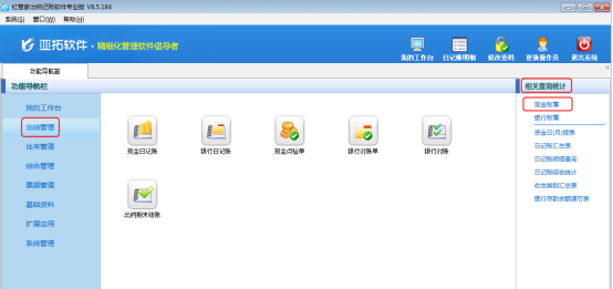 ????亞拓管理軟件標(biāo)準(zhǔn)版和專業(yè)版、紅管家出納記賬軟件標(biāo)準(zhǔn)版和專業(yè)版都包括出納管理功能,出納管理主要包含現(xiàn)金日記賬、銀行日記賬、現(xiàn)金點(diǎn)驗(yàn)單、銀行對賬單、銀行對賬和出納期末結(jié)賬等功能。下面我們以亞拓管理軟件專業(yè)版為例講一下出納模塊中現(xiàn)金點(diǎn)驗(yàn)單的使用方法。