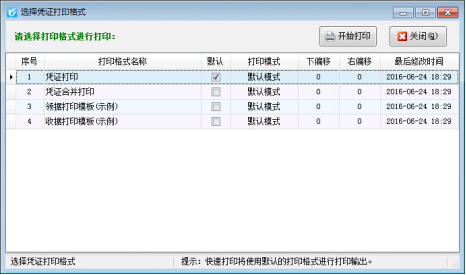 ????批量打印調(diào)用的是默認(rèn)打印格式模板,也可以選擇其他的打印格式模板進(jìn)行打印。選擇打印格式模板后,點(diǎn)擊“開始打印”按鈕進(jìn)行批量打印憑證。