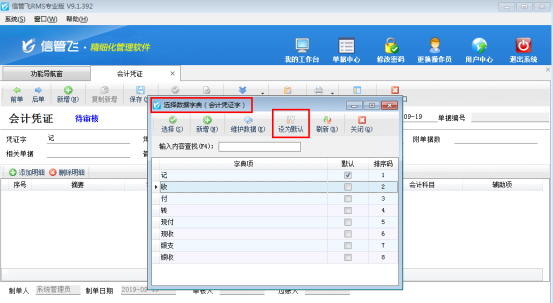 # 6.5.1 信管飛RMS會計憑證如何設(shè)置默認(rèn)憑證字?