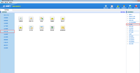????在功能導(dǎo)航窗點擊財務(wù)管理界面,右側(cè)相關(guān)查詢統(tǒng)計中點擊“總分類賬”,打開總分類賬界面。如下圖所示: