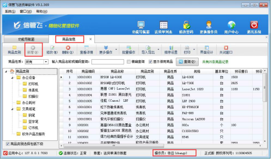 信管飛送貨單軟件、信管飛RMS軟件、信管飛倉庫管理軟件等都支持維護商品信息和允許設置多個操作員登錄軟件,為了避免開單時不同操作員同時新增商品出錯,軟件可以控制操作員的權限,使操作員開單時不能直接新增商品信息只能選擇添加好的商品信息。 以“信管飛送貨單軟件”為例,示范下如何設置操作員不能新增商品信息。 在功能導航窗選擇“系統管理”—》“操作員及授權”,進入操作員管理及授權界面,選擇操作員“張亞”,在右側的基礎資料權限設置中把“商品信息”的新增權限取消勾
