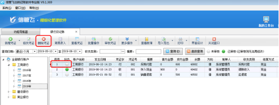 信管飛出納記賬軟件標準版和專業版在新增保存日記賬憑證后都可以直接審核憑證,憑證審核后,不允許直接刪除。客戶如果需要刪除已審核的憑證,需要先反審憑證,再進行刪除。下面我們介紹一下在信管飛出納記賬軟件專業版中如何刪除已審核的日記賬憑證?    在功能導航窗點“出納管理”—》“銀行日記賬”即可進入“銀行日記賬”界面,對“已審核”的憑證進行刪除時,系統會提示“當前憑證已審核,無法執行刪除操作!”,如圖1所示。圖1    在銀行日記賬列表界面,如圖2所示,點擊“更多操作”——》“反審憑證”,系統彈出提示信息