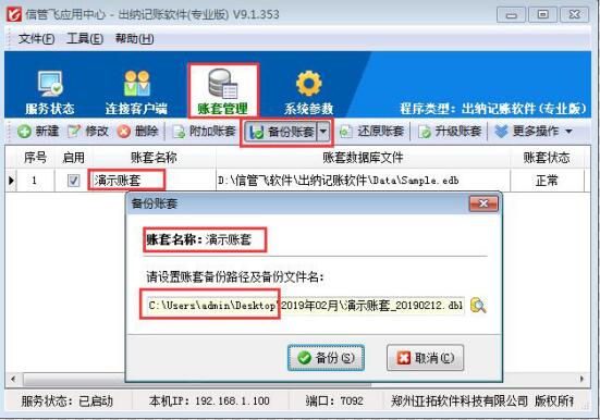亞拓旗下所有軟件安裝完成后,數(shù)據(jù)備份均保存在安裝軟件目錄下的賬套文件備份文件夾中,如需要更換電腦使用,需要把最近日期的備份數(shù)據(jù)復制到新的電腦上,在新的電腦上安裝好軟件,在應用中心程序中對之前的賬套備份數(shù)據(jù)進行還原操作,就可以把之前的所有數(shù)據(jù)同步到這個電腦上。 本文章以信管飛出納記賬軟件為例,演示下如何還原賬套備份。 把備份數(shù)據(jù).dbk格式的文件復制到電腦桌面上,方便還原賬套進行選擇。打開應用中心程序(紅色圖標),在賬套管理中點擊賬套文件(如沒有賬套可以新建一個新的賬套),點擊工具欄的“