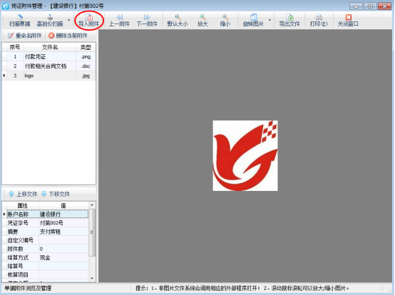信管飛出納記賬軟件、信管飛RMS標準版和專業(yè)版在新增或者修改憑證信息時,支持添加文檔、圖表等憑證附件資料,可掃描或導入與出納憑證相關的電子文件,方便用戶更全面、直接地查詢日記賬憑證的全過程,有利于企業(yè)對日記賬憑證的管理。下面我們以信管飛出納記賬軟件專業(yè)版的銀行日記賬憑證為例介紹一下如何添加憑證附件。 新增一個銀行日記賬,如圖1所示,憑證保存后,點擊工具欄中的“憑證附件”按鈕,可以進入“憑證附件管理”界面,如圖2所示,可掃描或導入與憑證相關的電子文件。圖1 憑證信息窗口圖2 憑證附件管理界面 &nbs