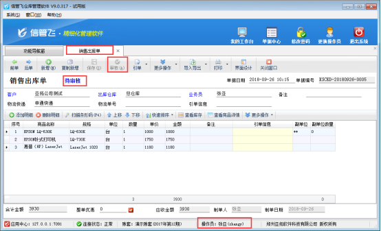 信管飛倉庫管理軟件、信管飛rms軟件等都支持設置多個操作員登錄軟件,軟件可以設置操作員的具體使用權限。如果需要操作員只能開單不能管理庫存的出入庫。軟件可以設置操作員不可審核單據權限(軟件庫存的實際增減是單據審核進行影響的)。以“信管飛倉庫管理軟件”為例,示范下如何控制操作員的審核單據權限。 在功能導航窗選擇“系統管理”—》“操作員及授權”,進入“操作員及授權管理界面”,選擇操作員組的操作員“張亞”,在其右側的功能設置權限,把銷售出庫單的“審核”權限取消勾選,然后點擊保存設置,如下圖所示:
