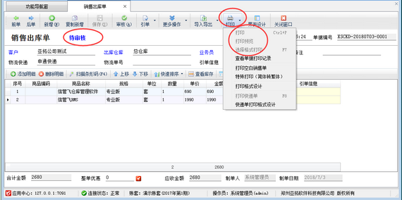 信管飛RMS、信管飛倉(cāng)庫(kù)管理軟件等默認(rèn)開單保存后即可打印,部分用戶想設(shè)置在單據(jù)未審核之前不允許打印,如何設(shè)置呢?本篇文章我們以信管飛倉(cāng)庫(kù)管理軟件為例來介紹一下如何設(shè)置處于“待審核”的單據(jù)不可打印? 在功能導(dǎo)航窗點(diǎn)擊“系統(tǒng)管理”—》“系統(tǒng)參數(shù)配置”—》“業(yè)務(wù)參數(shù)”,即可進(jìn)入到“業(yè)務(wù)參數(shù)”配置界面,在打印參數(shù)內(nèi)找到“處于‘待審核’的單據(jù)可打印”參數(shù),把這個(gè)參數(shù)的勾選去掉,然后保存,如下圖一所示。圖一 系統(tǒng)參數(shù)設(shè)置界面 配置保存后,在功能導(dǎo)航窗點(diǎn)擊“銷售管理”—》“銷售出庫(kù)單”,