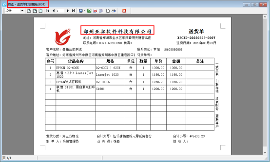 此文章相關演示視頻:打印模板如何固定打印行數演示視頻 信管飛送貨單軟件、信管飛RMS軟件、信管飛倉庫管理軟件,都支持開單打印單據,軟件中內置了十幾種打印模板供客戶選擇使用,也支持自定義設計打印模板,有客戶打印時需要行數是固定的,我們以送貨單軟件為例設置下如何固定打印行數? 未調整前打印預覽顯示如下圖: 導航欄選擇“業務處理”—》“新開訂單”—》打印—》打印格式設計—》設計格式,進入打印模板的設計器界面