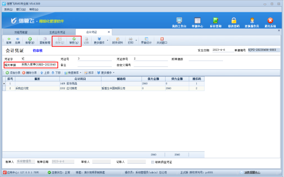 信管飛RMS專業版包含功能模塊財務處理模塊,可登記會計憑證。信管飛軟件最新版本針對此模塊添加了“生成業務憑證”功能,可直接對已開單據進行快速生成會計憑證操作,本文示范下如何操作? 在功能導航窗點擊“財務處理”打開“生成業務憑證”界面。打開界面默認顯示已開的業務單據,如下圖所示: 支持選擇單個單據點擊“生成憑證”進行憑證生成操作,也可以在“批量操作”模式下批量選擇單據進行批量生成,生成憑證后在已生成憑證狀態會以“√”顯示。如下圖所示: &nb