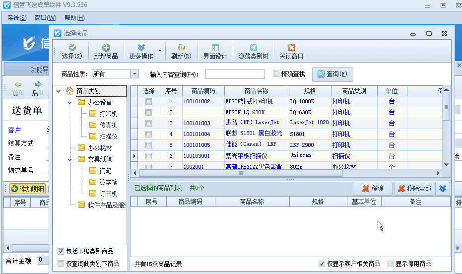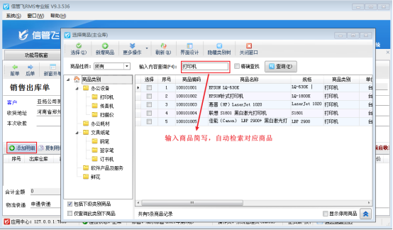 信管飛送貨單軟件開送貨單前可提前添加好商品信息到基礎資料中,新開送貨單選擇客戶后,選擇“添加明細”可彈出選擇商品界面,可選擇添加好的商品信息,有用戶反映在選擇商品界面,查詢窗口輸入商品簡寫不自動過濾,需要點擊下查詢才會進行檢索,如下圖所示: 經檢查發現,原因是啟用了參數影響,解決辦法如下,在功能導航窗點擊“系統管理”—“系統參數配置”,在“業務參數”的選擇參數中取消勾選參數“商品每一次查詢到服務器上進行”,然后保存設置,如下圖所示: 參數取消勾選并保