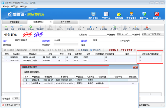 信管飛RMS軟件、信管飛送貨單軟件等都支持先開訂單,出庫(kù)單可引用訂單開單,出庫(kù)單審核完成引用的訂單執(zhí)行狀態(tài)會(huì)自動(dòng)更新,執(zhí)行狀態(tài)更新情況:出庫(kù)數(shù)量<訂單數(shù)量,訂單執(zhí)行狀態(tài)變?yōu)椴糠滞瓿,出?kù)數(shù)量=訂單數(shù)量,訂單執(zhí)行狀態(tài)變?yōu)橐淹瓿伞?nbsp; 如存在引用部分訂單數(shù)量,之后不再引用此訂單開單,可手動(dòng)標(biāo)記訂單為已完成狀態(tài)。如下圖: 目前軟件對(duì)于手動(dòng)標(biāo)記為已完成狀態(tài)的訂單,后期如修改引用此訂單的出庫(kù)單數(shù)量,只要小于訂單數(shù)量,手動(dòng)標(biāo)記完成的訂單執(zhí)行狀態(tài)仍會(huì)自動(dòng)更新,變
