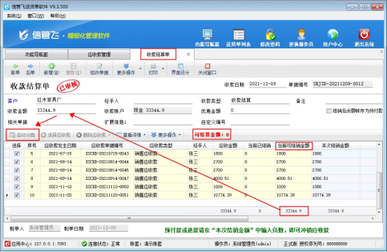 信管飛送貨單軟件是集送貨開單、打印和應(yīng)收款管理為一體的軟件,送貨單確認開單后自動生成對應(yīng)的一筆應(yīng)收款,有客戶存在分批付款情況,針對此情況軟件支持對應(yīng)收款進行批量結(jié)銷。本文示范下如何批量結(jié)銷應(yīng)收款。 在功能導(dǎo)航窗點擊“業(yè)務(wù)處理”—》“應(yīng)收款管理”,選擇一筆未結(jié)銷的應(yīng)收款點擊“收款結(jié)算”,會彈出收款結(jié)算單界面,如下圖所示: 彈出的收款結(jié)算單界面默認顯示此客戶所有未結(jié)銷的應(yīng)收款。需要批量結(jié)銷應(yīng)收款,收款金額需要輸入所有當前可結(jié)銷金額的合計,沒有資金賬戶默認