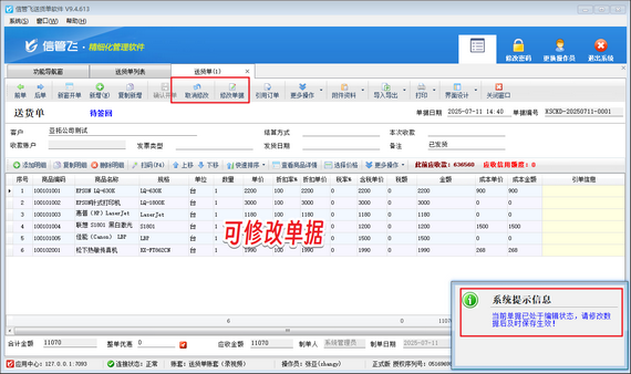 有用戶操作員賬號登錄軟件在修改送貨單時,無法修改送貨單,提示:“當前單據由其他人員創建,您沒有權限修改!”如下圖所示。 演示視頻觀看鏈接:不可修改他人創建的送貨單,如何解決演示視頻 出現以上問題的原因是:當前登錄的操作員賬號沒有可修改有查看權限的數據的權限。 解決方法如下:使用系統管理員賬號登錄軟件,在功能導航窗點擊“系統管理”—》“操作員及授權”打開操作員管理及授權界面,選擇操作員賬號,在“數據權限”界面將送貨單、退貨單的“可修改有查看權限的數據”