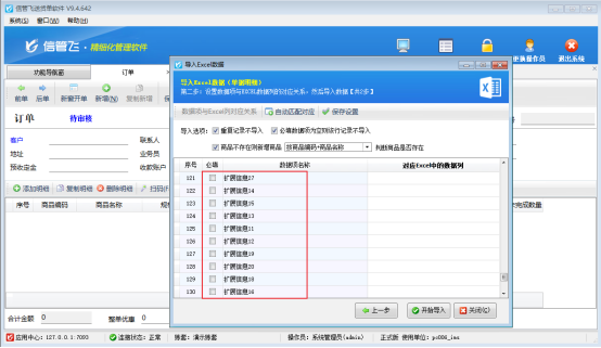 信管飛軟件支持通過Excel導入數據,通過Excel數據導入可以將數據方便快捷的導入到軟件中,省去了使用初期大量的數據的錄入所要消耗的時間及人力物力,并避免人為錄入的誤差,使數據錄入的簡單、準確、高效。然而,部分客戶使用的擴展信息字段比較多在導入明細數據時可能會遇到擴展信息10之后的擴展字段不顯示。下面我們以“信管飛送貨單軟件”為例,介紹下出現這種情況如何解決? 解決方法:在導入Excel數據界面,鼠標點擊空白地方右鍵,選擇刷新數據項,被隱藏的擴展信息及其他字段都會顯示出來,如:商品擴展信息1、擴