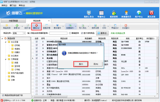 信管飛倉庫管理軟件支持維護商品信息,出現商品信息大范圍錄入錯誤時,軟件支持對錯誤商品資料進行批量刪除操作,避免一個一個刪除的麻煩。我們以信管飛倉庫管理軟件為例介紹下如何操作? 在功能導航窗選擇“基礎資料”—》“商品信息”進入商品信息管理界面,選擇工具欄的“批量操作”按鈕,進入批量操作模式,選擇需要刪除的商品信息(批量操作支持全選、全不選、反選),如下圖所示: 批量選擇商品信息后,點擊工具欄的“刪除”按鈕,會提示“您確定要刪除當前選擇的商品嗎?”,點擊“是”按鈕進行批量刪除操作。如下圖所