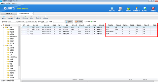 信管飛出納記賬軟件、信管飛RMS標準版和專業版在新增出納憑證時都支持錄入憑證明細,方便用戶錄入每個憑證的明細內容(系統默認沒有啟用憑證明細功能,啟用方法請參考:出納憑證如何啟用憑證明細功能?),軟件支持對憑證明細進行查詢統計,本篇文章以信管飛RMS專業版為例詳細介紹一下如何查詢出納憑證明細。 在功能導航窗點“出納管理”—》“銀行日記賬”,新增憑證界面點擊“憑證明細”,可以添加憑證明細內容,如圖1所示:圖1 在功能導航窗點“出納管理”—》“出納憑證明細查詢”,進入出納憑證明細查詢界面,可以