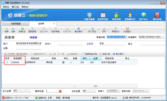 信管飛系列軟件都支持設置界面顯示風格,可設置界面的顯示高度和字體大小,本篇文章以“信管飛送貨單軟件”為例。示范下如何調整開單界面的標題行和數據項的行高。 調整前行高如下圖所示: 登錄軟件界面,在左上角的系統按鈕下選擇“界面顯示設置”可進入界面顯示調整界面。默認顯示設置如下圖所示: 界面風格中可調整標題行行高和數據行行高,字體顯示大小也可以進行修改。修改后重新登錄軟件會變為修改后的顯示,下圖為修改后顯示