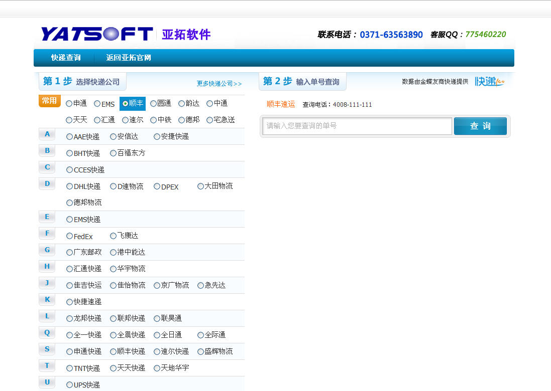 物流快遞單查詢網站:http://www.yatsoft.com/kuaidi.html
