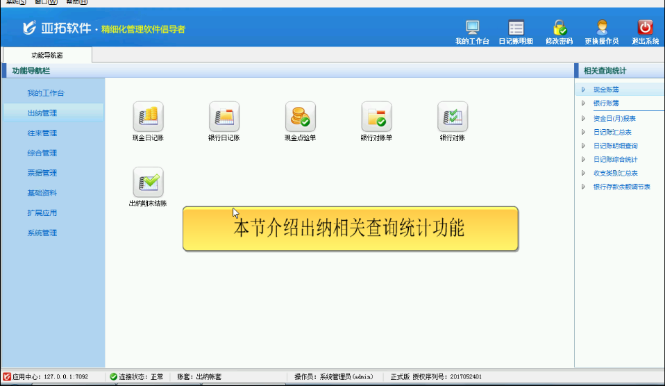 介紹信管飛RMS出納管理相關(guān)查詢統(tǒng)計的主要功能。