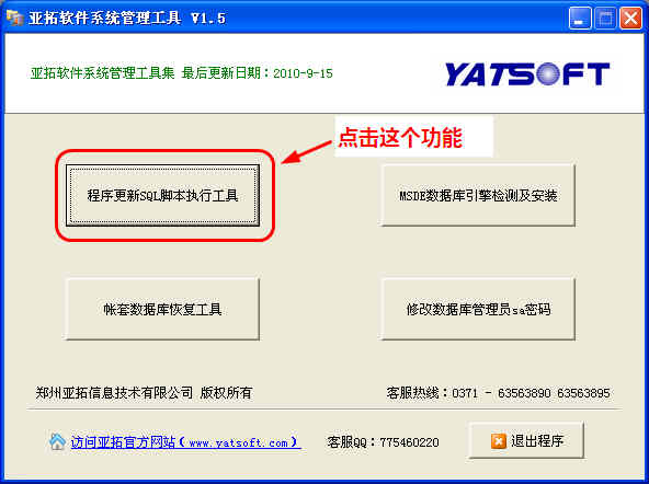 第二步、點擊“程序更新SQL腳本執行工具”,進入更新腳本窗口: