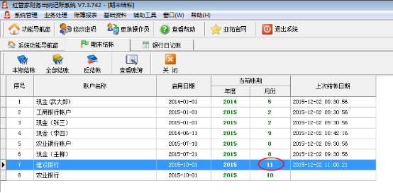 全部結(jié)帳:在帳戶列表中,點擊工具欄中的“全部結(jié)帳”按鈕,實現(xiàn)所有帳戶的結(jié)帳。