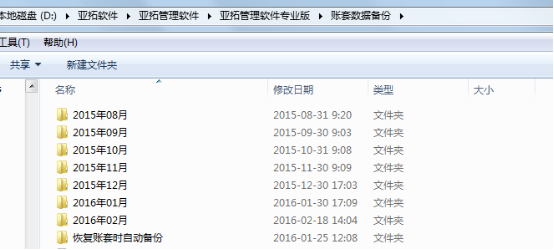 ②賬套備份文件會(huì)按照年月分目錄存儲(chǔ),由于備份為完整備份,因此早前的備份可以直接刪除。我們建議保留本月和每年一月的賬套備份文件。