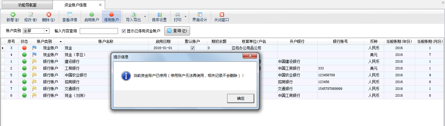 二、設(shè)置停用資金賬戶不顯示