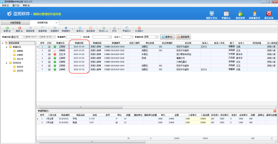 登錄軟件,在功能導(dǎo)航窗點(diǎn)“采購管理”—》“采購單列表”即可進(jìn)入“采購單列表”界面,如圖1所示,系統(tǒng)默認(rèn)的日期格式是“YYYY-MM-DD”格式顯示的。