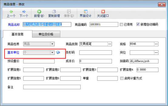 【注】:修改單位名稱,會自動更新之前的開過的單據(jù)的商品基本單位。