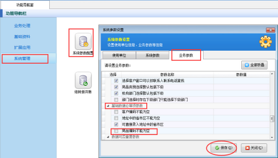 亞拓軟件自主研發(fā)的紅管家送貨單軟件、亞拓管理軟件中都支持設(shè)置這一參數(shù)。我們以送貨單軟件為例,設(shè)置參數(shù)“商品編碼不能為空。”打開系統(tǒng)管理—》“系統(tǒng)參數(shù)配置”選擇“業(yè)務(wù)參數(shù)的基礎(chǔ)數(shù)據(jù)必填項(xiàng)參數(shù)”中的“商品編碼不能為空”勾選上此參數(shù),點(diǎn)擊保存按鈕,操作如下圖所示: